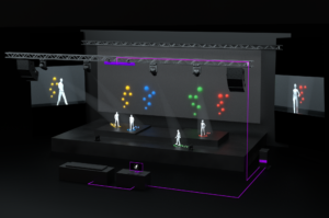 Le système de tracking K SYSTEM capture et transmet les données de position 3D (X,Y,Z) de l’ensemble des performers aux contrôleurs d’automatisation et permet d’automatiser en temps réel et avec une parfaite synchronisation vos effets audiovisuels. Intégrez cet outil à vos créations et connectez-le à vos systèmes d’éclairage, serveurs multimédias, projection vidéo, audio, sonorisation, captation ou n’importe quel système qui peut bénéficier d’un suivi temps réel pour réaliser des effets.